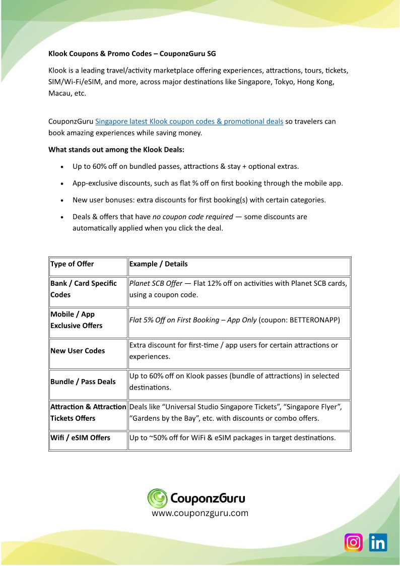 Klook Promo Code - Upto 60% + Extra 5% App Discount, Active Today