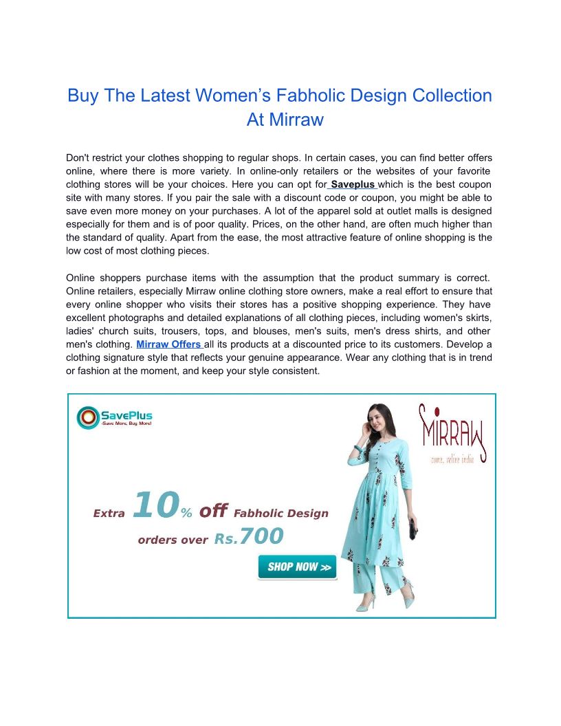 Extra 10% off Fabholic Design orders over Rs.700