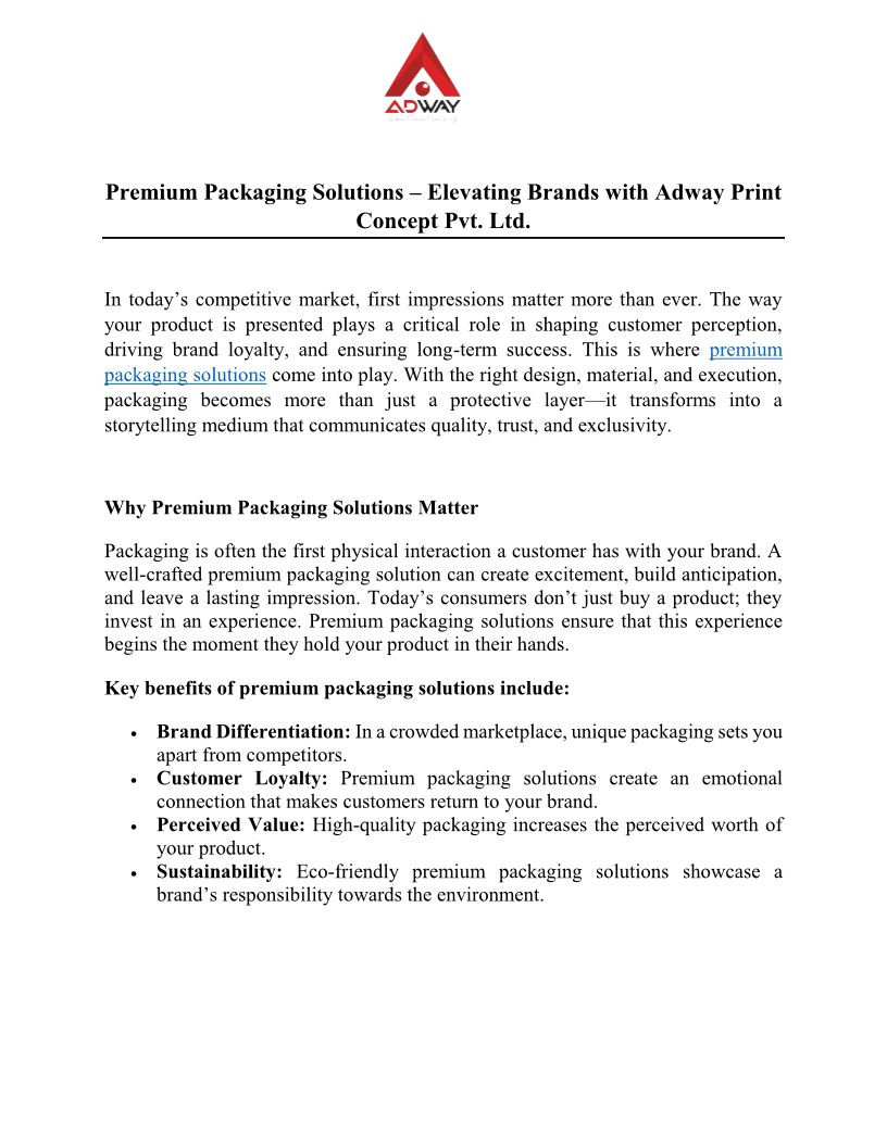 Premium Packaging Solutions – Elevating Brands with Adway Print Concept Pvt. Ltd.