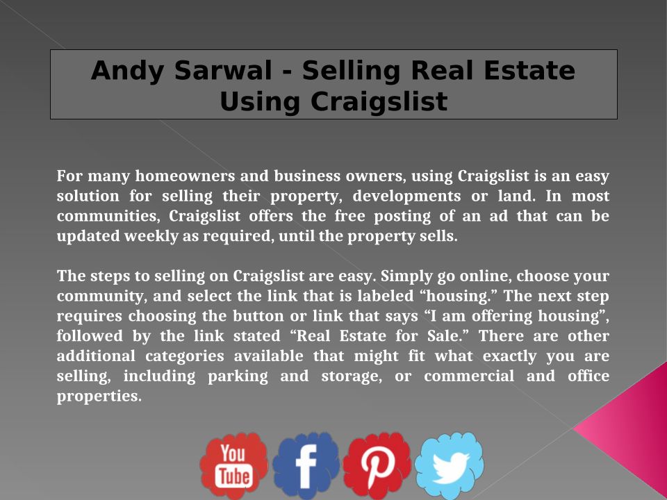 Andy Sarwal - Selling Real Estate Using Craigslist