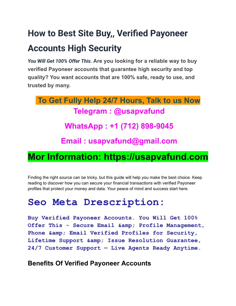 How to Best Site Buy,, Verified Payoneer Accounts High Security