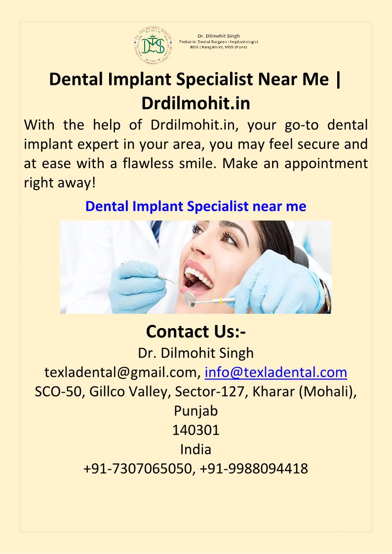 Dental Implant Specialist Near Me Drdilmohit.in