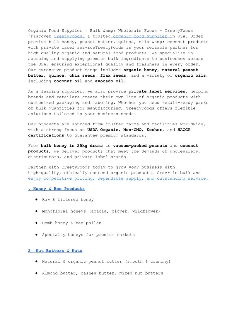 Organic Food Supplier | Bulk & Wholesale Foods – TreetyFoods