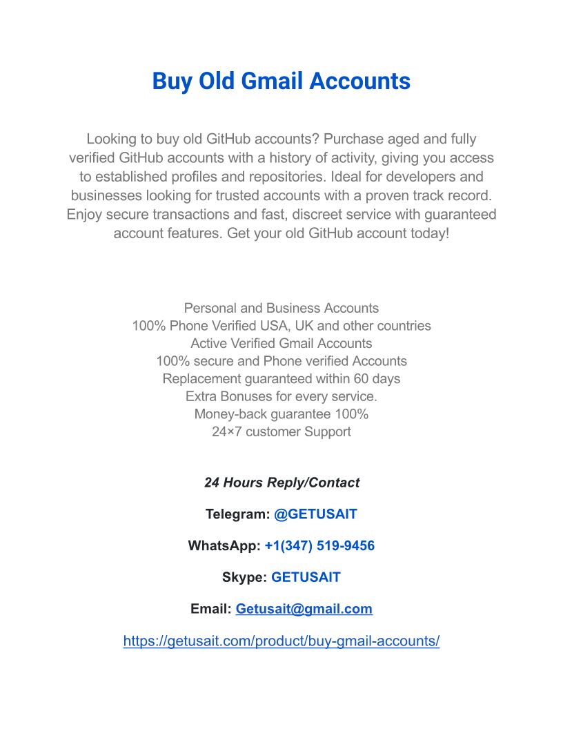 Tested Each Old Gmail Account Verified Before Delivery.Buy