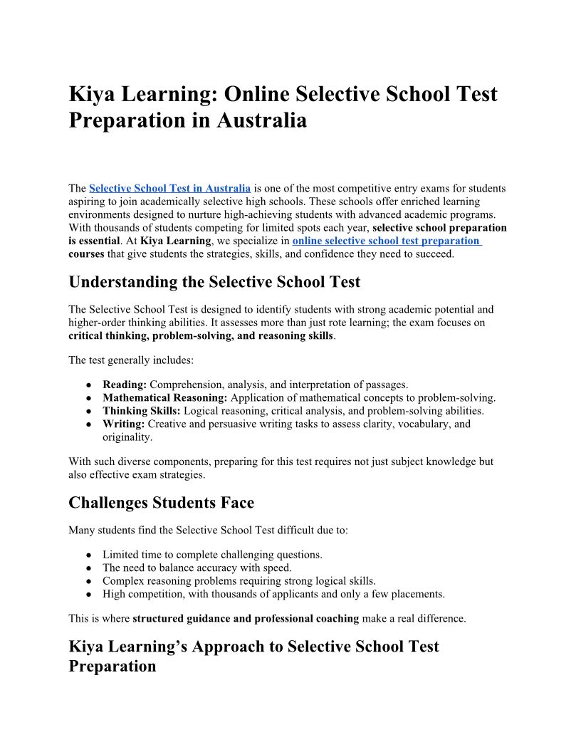 Kiya Learning_ Online Selective School Test Preparation in Australia