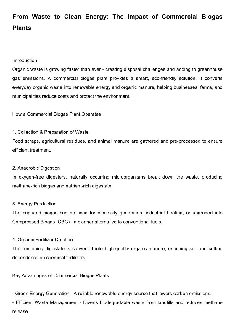 From Waste to Clean Energy: The Impact of Commercial Biogas Plants
