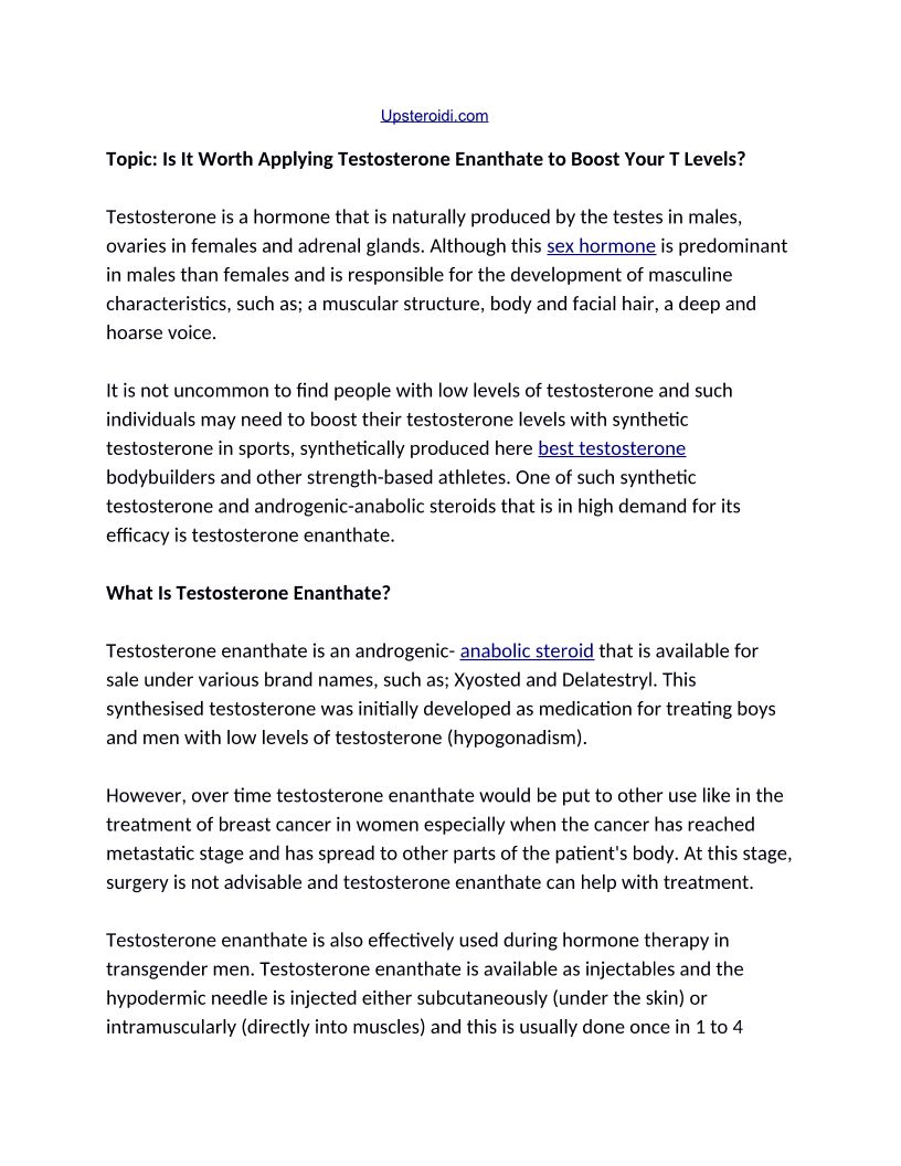 Is It Worth Applying Testosterone Enanthate to Boost Your T Levels