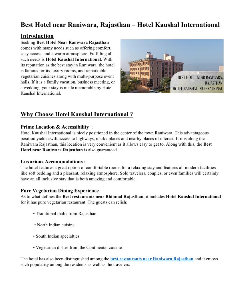 Best Hotel Near Raniwara Rajasthan – Stay at Hotel Kaushal International