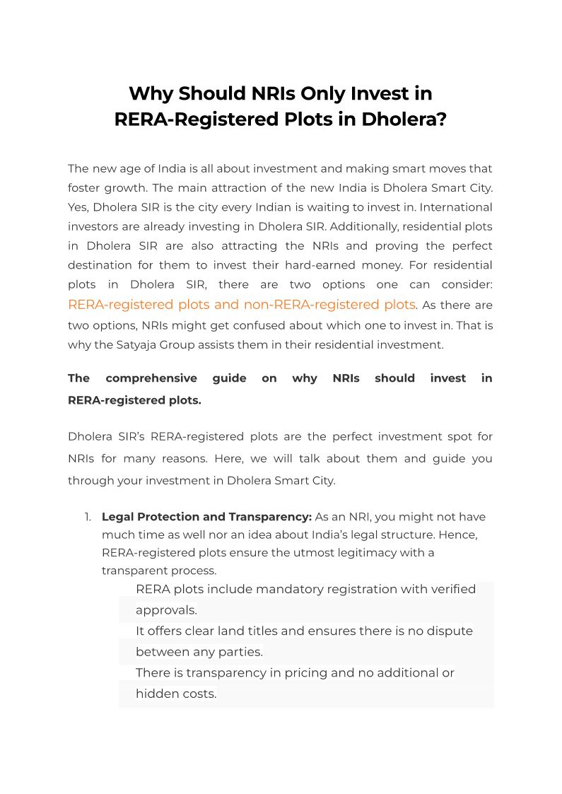 Why Should NRIs Only Invest in RERA-Registered Plots in Dholera