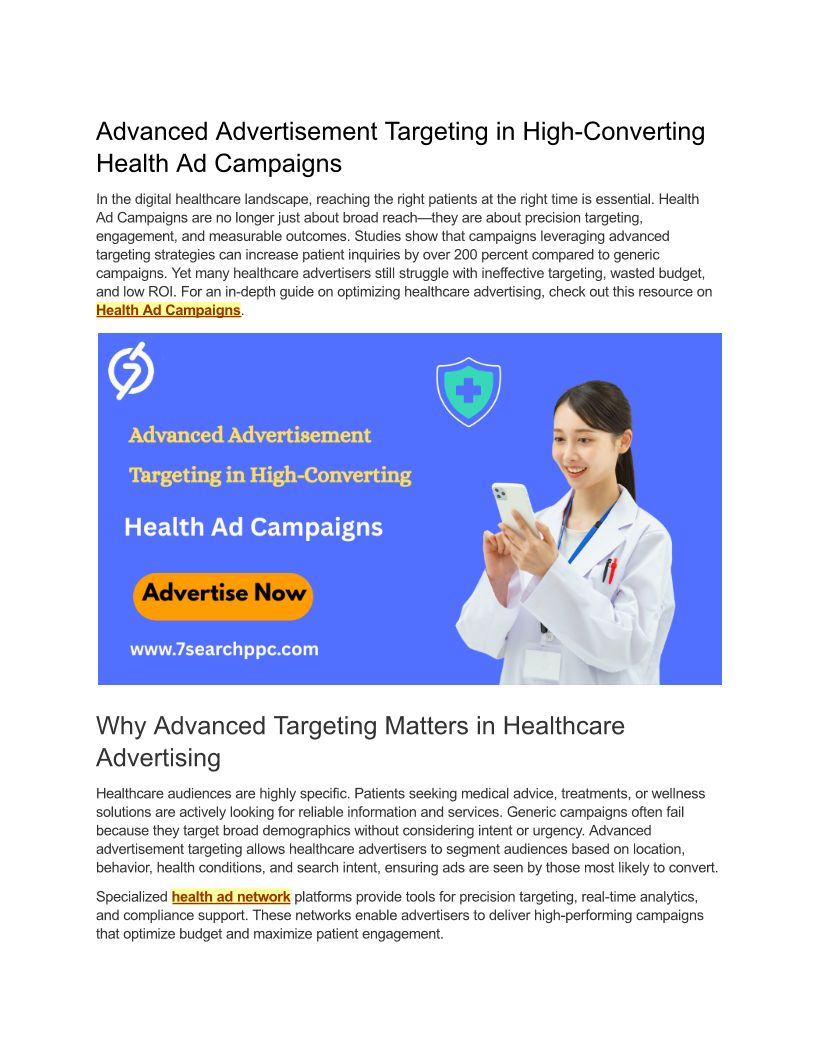 Advanced Advertisement Targeting in High-Converting Health Ad Campaigns