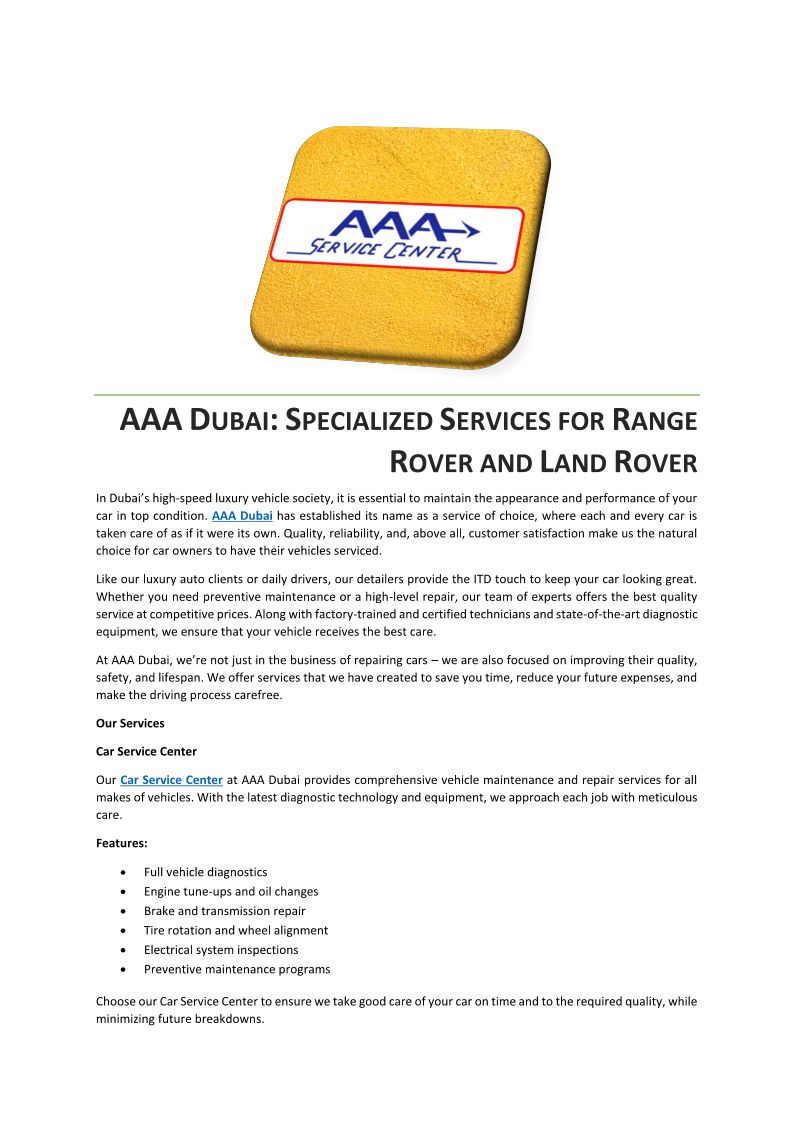AAA DUBAI SPECIALIZED SERVICES FOR RANGE ROVER AND LAND ROVER