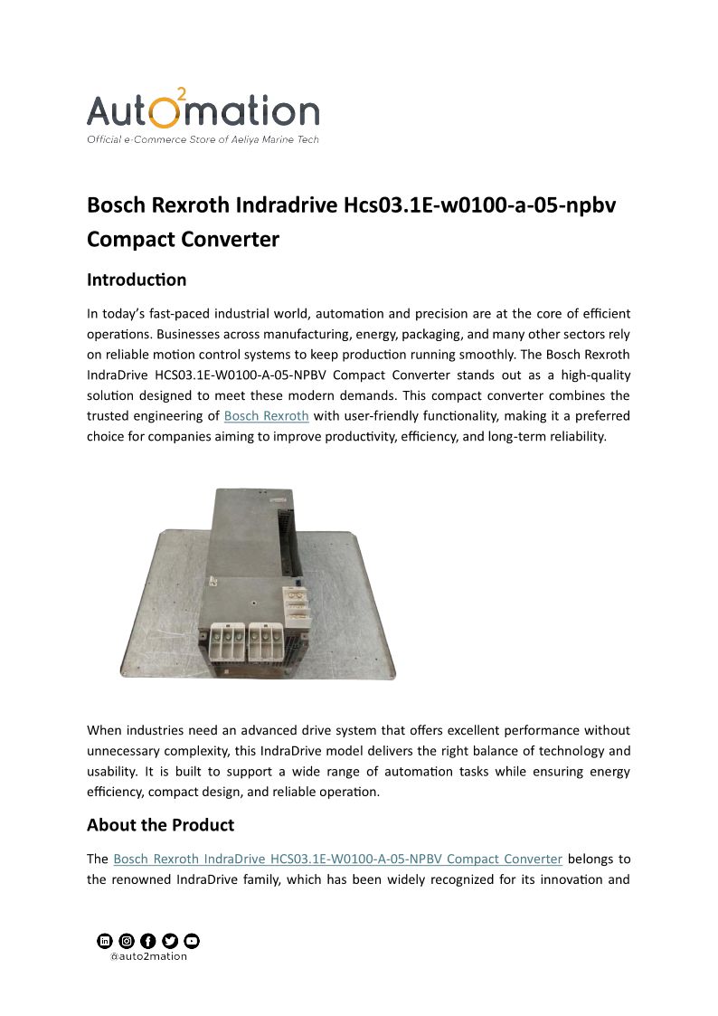 Bosch Rexroth Indradrive Hcs03.1E-w0100-a-05-npbv Compact Converter