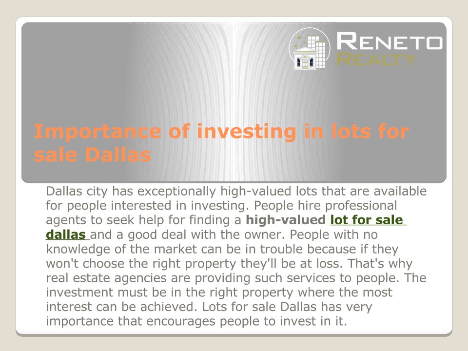Reneto provide Lots for sale Dallas Affordable price Lots for sale Dallas