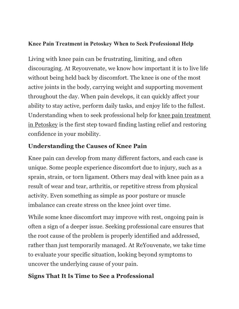 Knee Pain Treatment in Petoskey When to Seek Professional Help