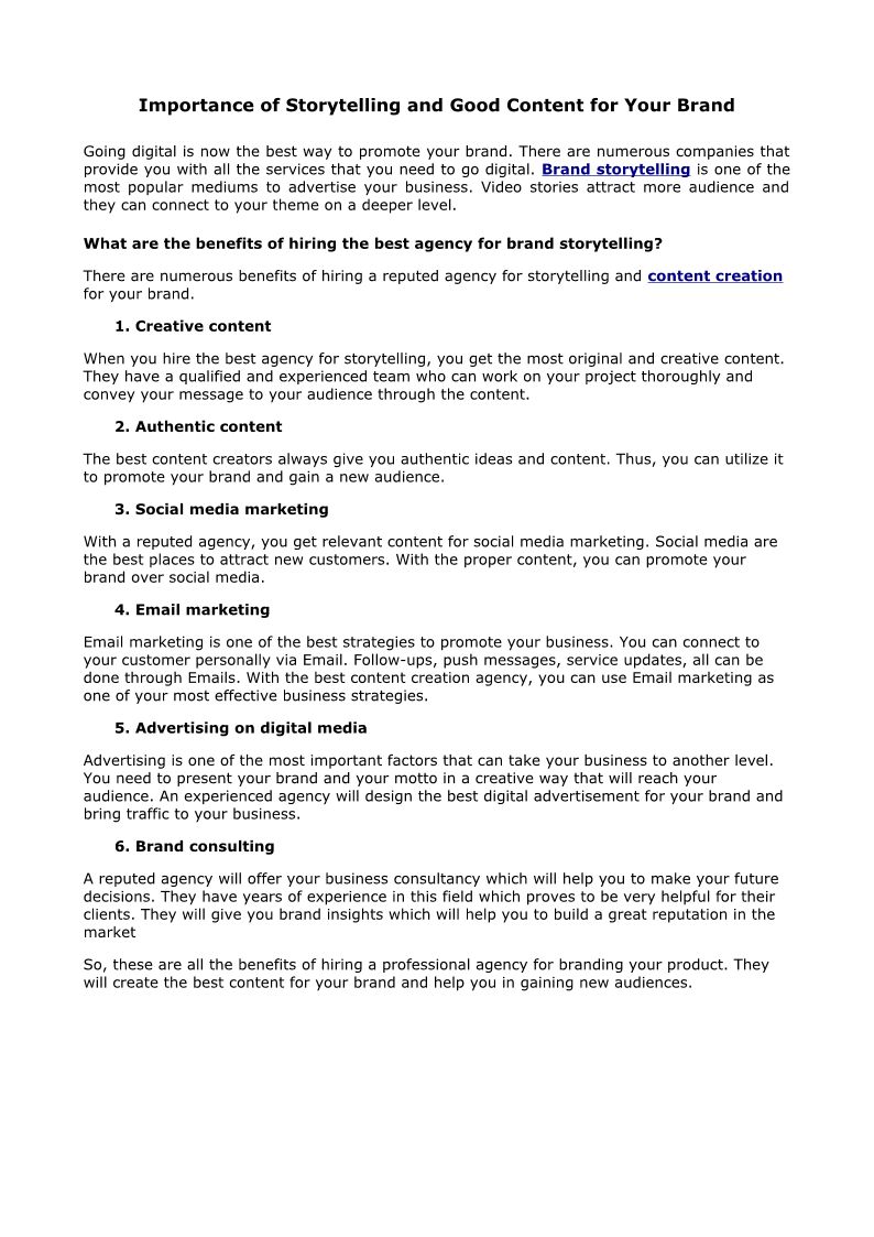 Importance of Storytelling and Good Content for Your Brand