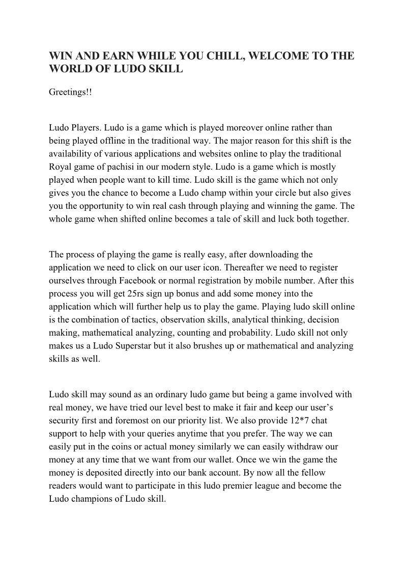 WIN AND EARN WHILE YOU CHILL, WELCOME TO THE WORLD OF LUDOSKILL