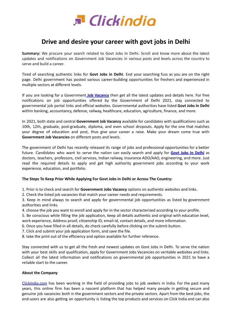 Drive and desire your career with govt jobs in Delhi
