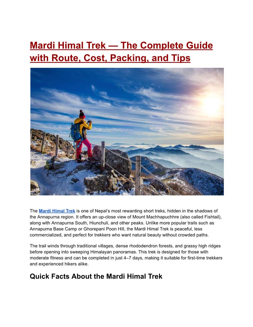 Mardi Himal Trek Guide 2025 — Route, Cost, Packing & Tips