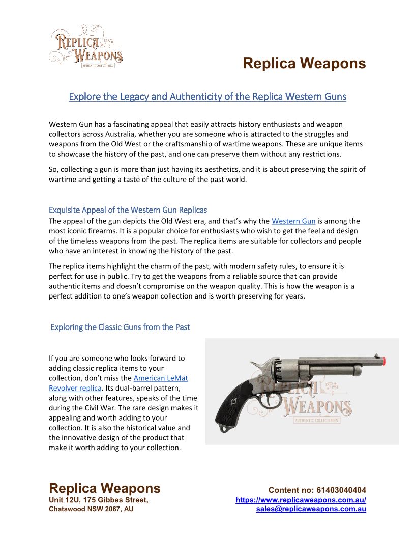 Explore the Legacy and Authenticity of the Replica Western Guns