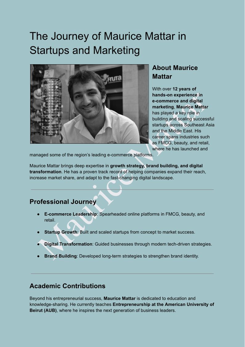 The Journey of Maurice Mattar in Startups and Marketing
