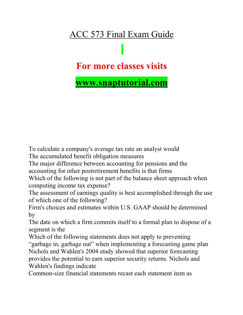 ACC 573 Innovative Education / snaptutorial.com