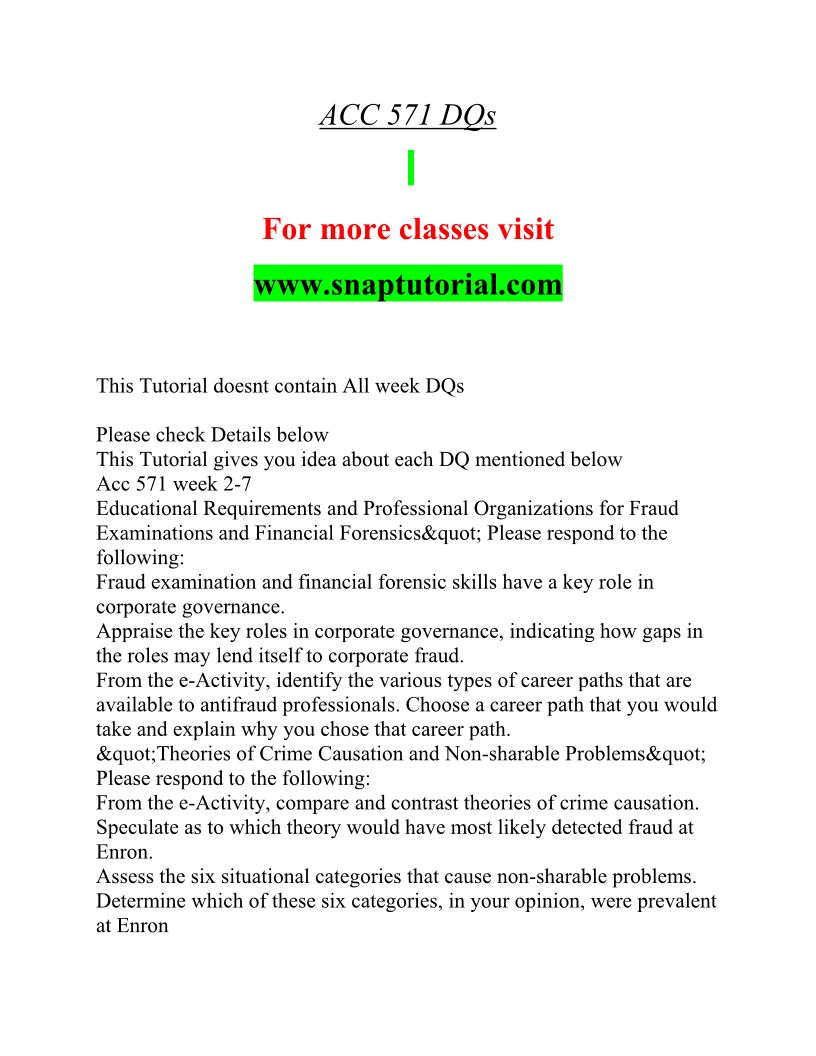 ACC 571 Innovative Education / snaptutorial.com