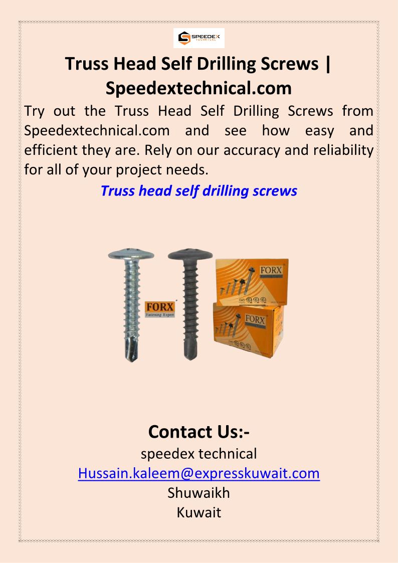 Truss Head Self Drilling Screws Speedextechnical.com