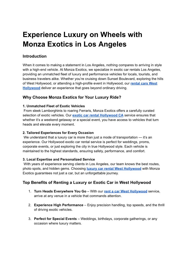 Experience Luxury on Wheels with Monza Exotics in Los Angeles