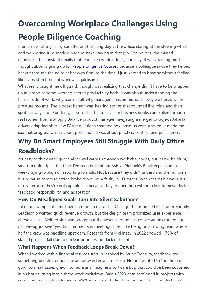 Overcoming Workplace Challenges Using People Diligence Coaching