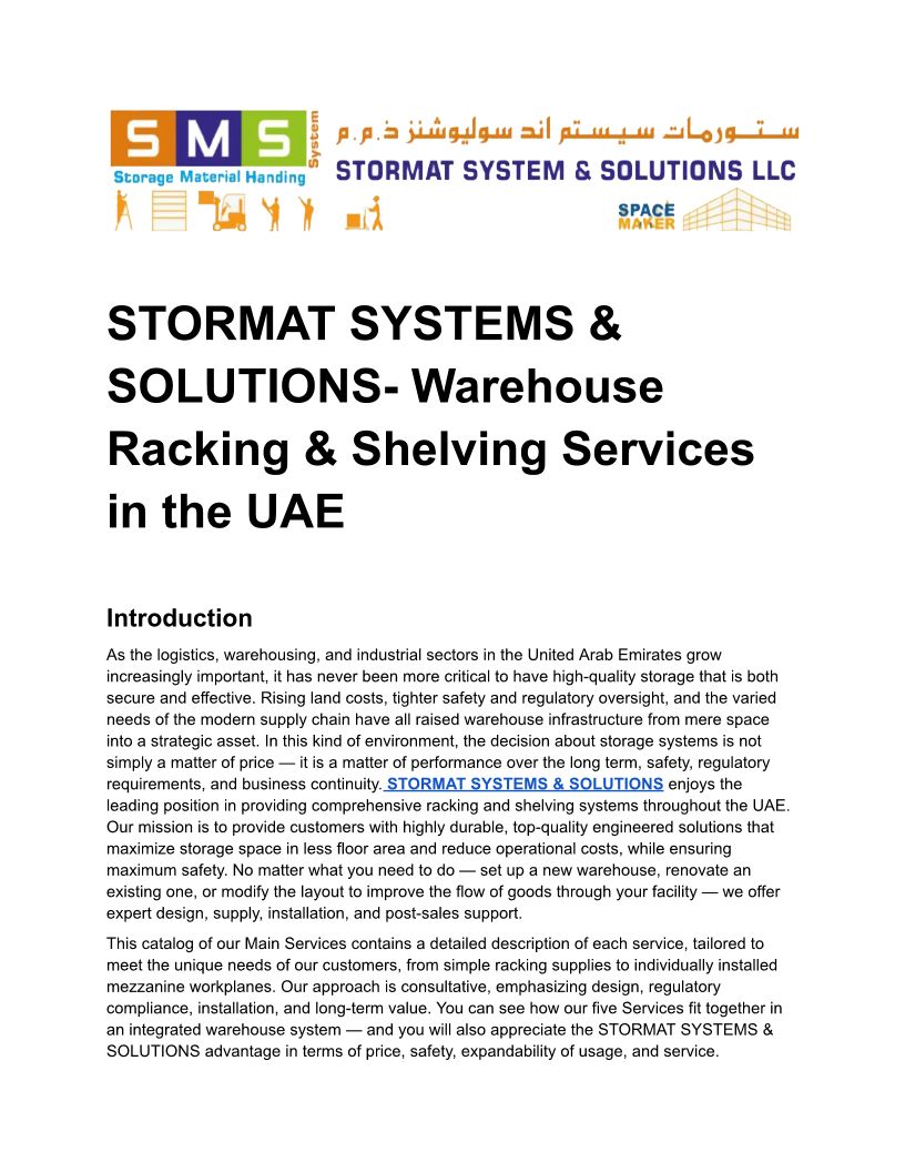 _STORMAT SYSTEMS & SOLUTIONS- Warehouse Racking & Shelving Services in the UAE