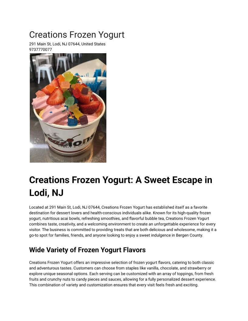 Creations Frozen Yogurt: A Sweet Escape in Lodi, NJ