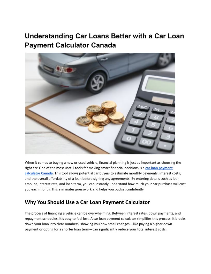 Understanding Car Loans Better with a Car Loan Payment Calculator Canada