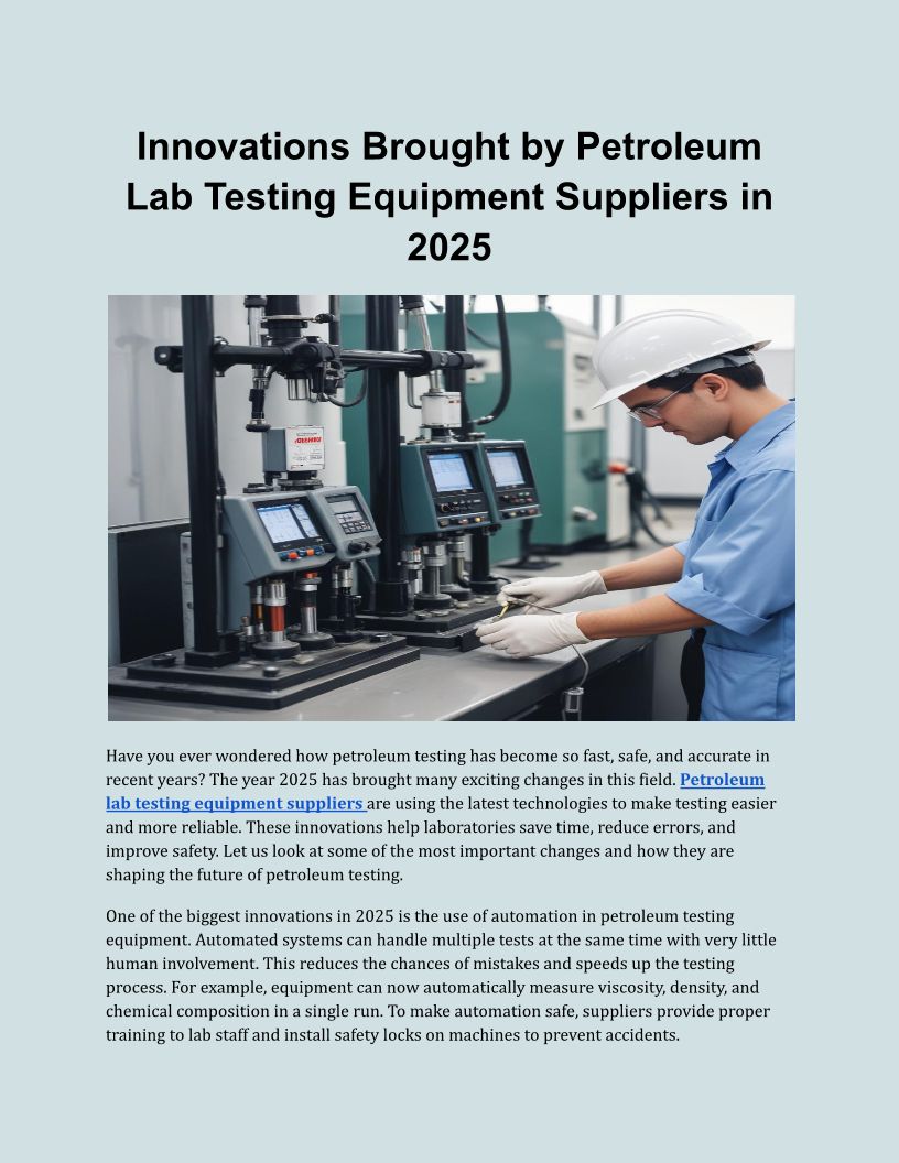 Innovations Brought by Petroleum Lab Testing Equipment Suppliers in 2025