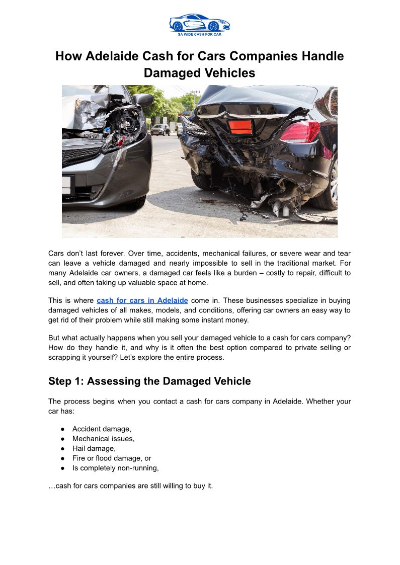 Adelaide Cash for Cars Companies Handle Damaged Vehicles
