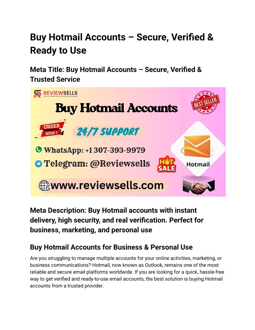 3Buy Hotmail Accounts – Secure, Verified & Ready to Use