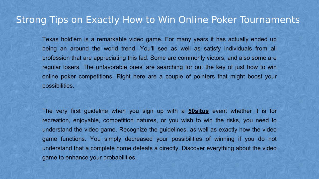 Strong Tips on Exactly How to Win Online Poker Tournaments