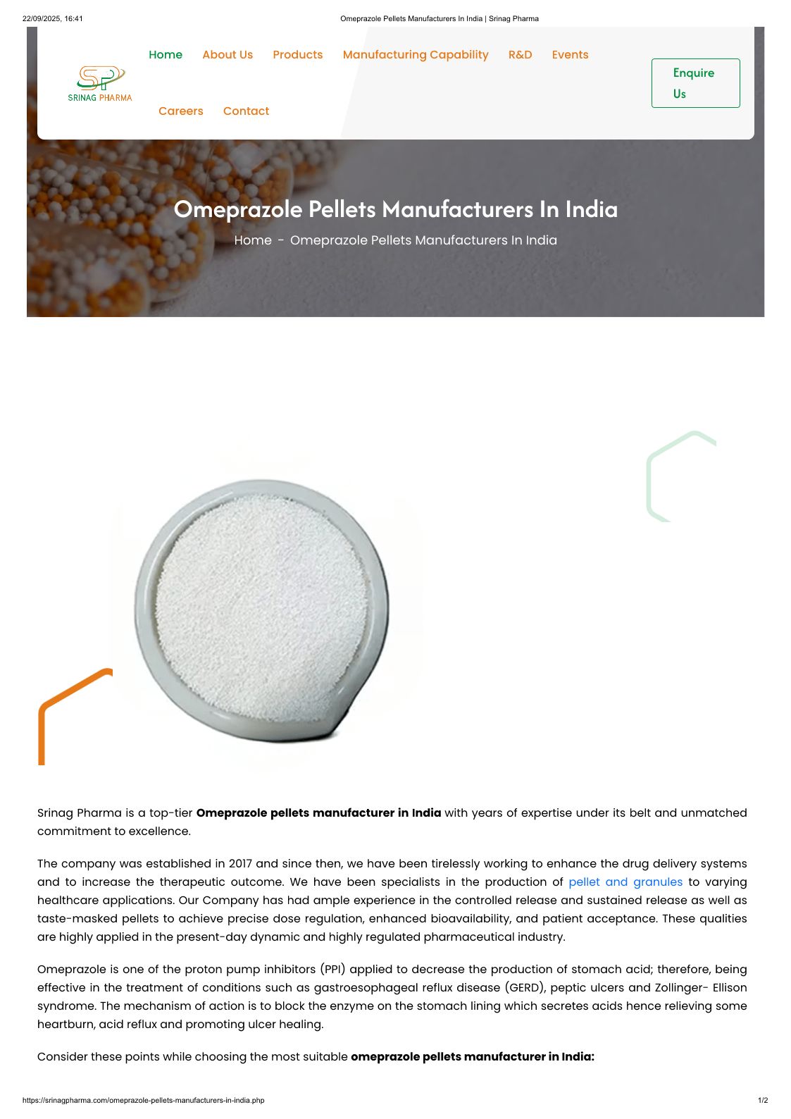Omeprazole Pellets Manufacturers In India _ Srinag Pharma