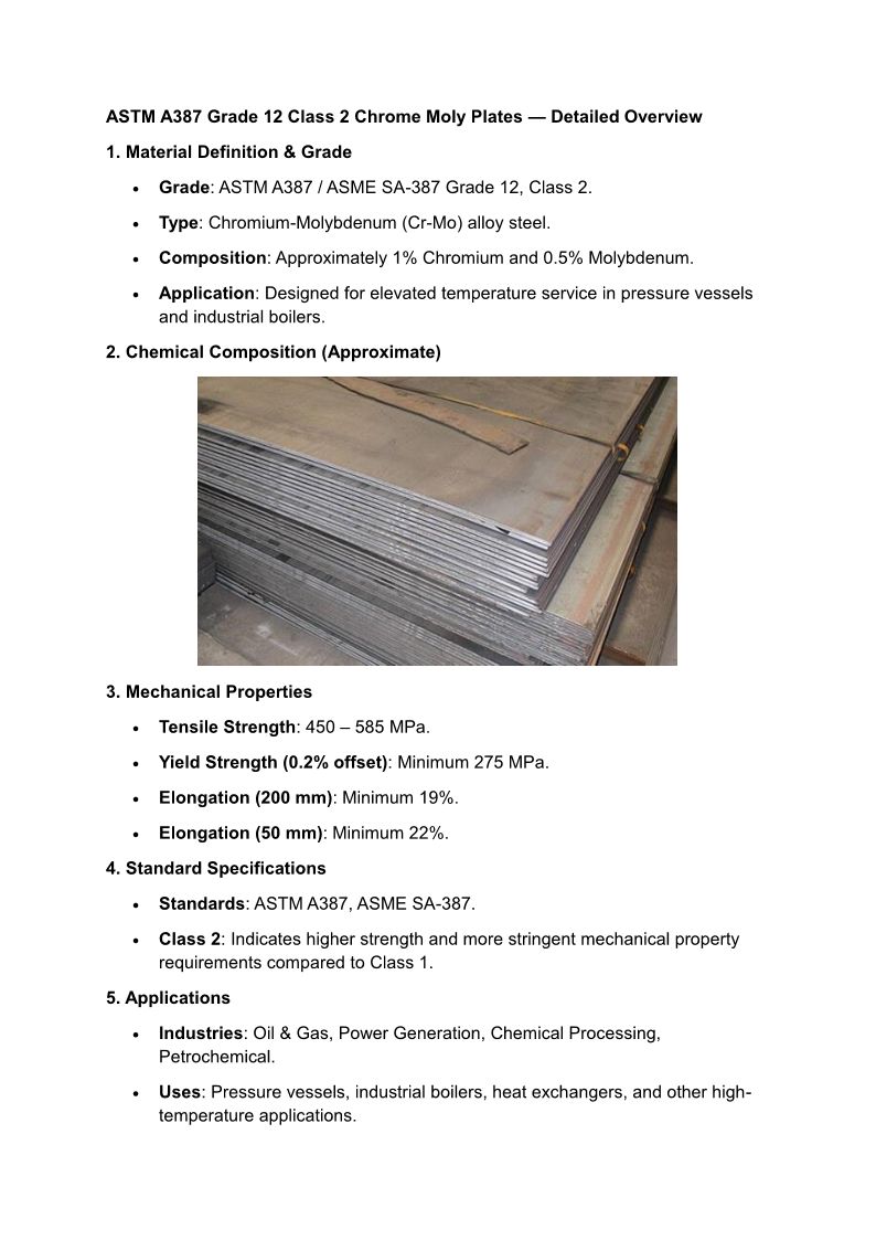 Authorized Importers of ASTM A387 Grade 12 Class 2 Chrome Moly Plates