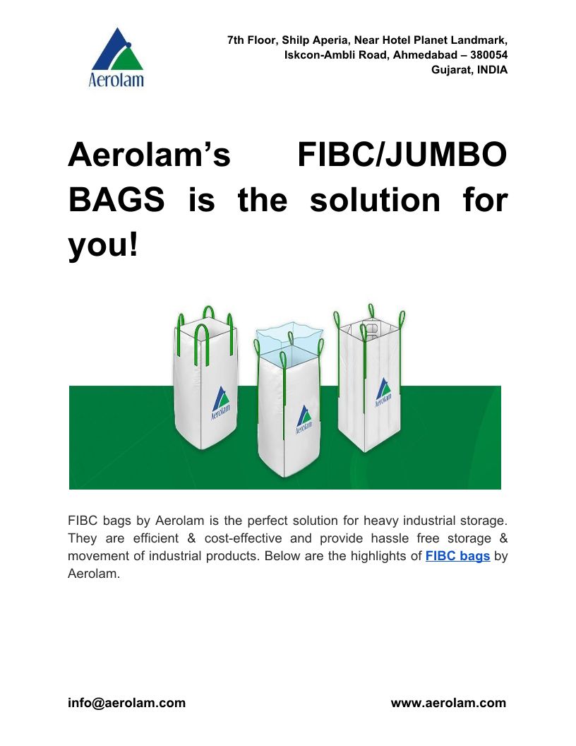 Need industrial storage bags Aerolam FIBC JUMBO BAGS is the solution for you