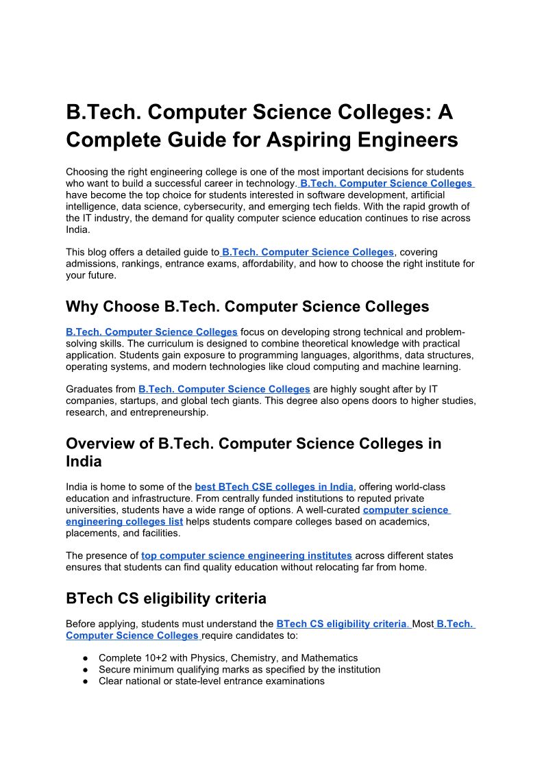 B.Tech. Computer Science Colleges: A Complete Guide for Aspiring Engineers