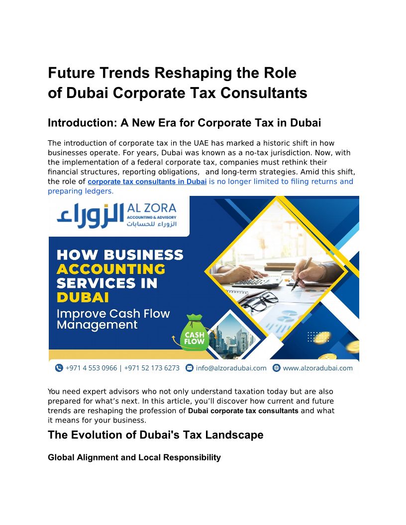 Future Trends Reshaping the Role of Dubai Corporate Tax Consultants