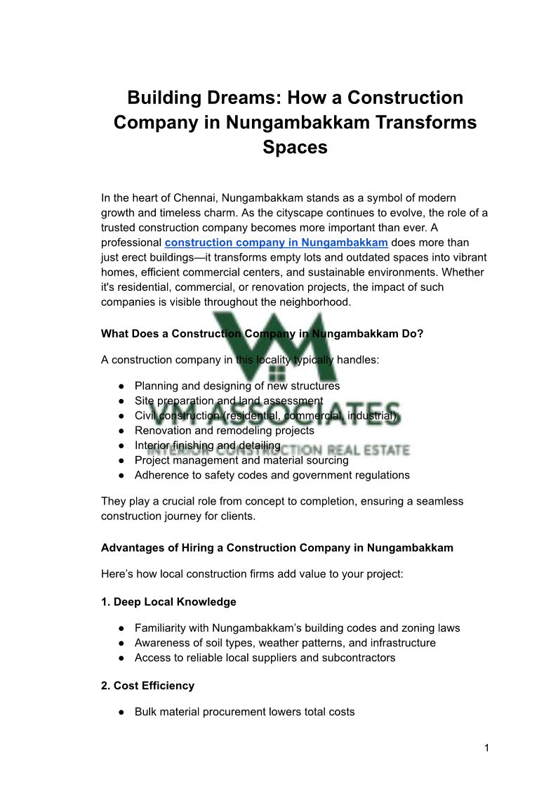 Building Dreams: How a Construction Company in Nungambakkam Transforms Spaces