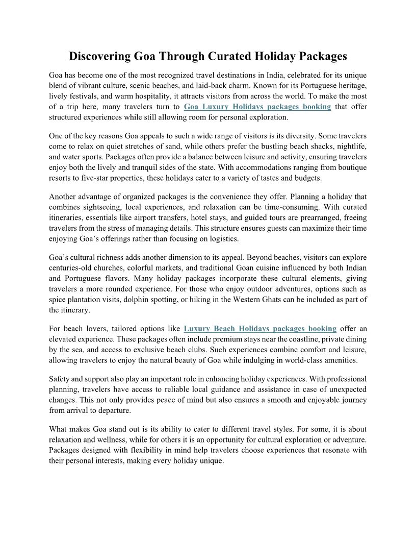 Discovering Goa Through Curated Holiday Packages