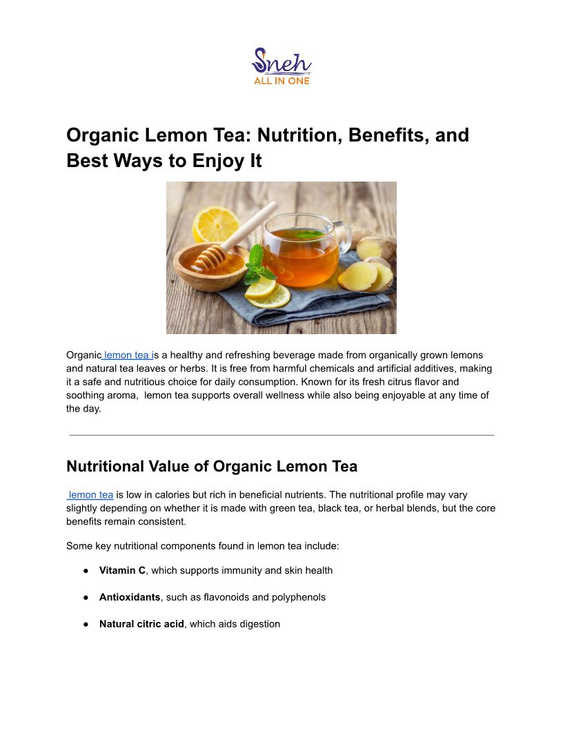Organic Lemon Tea Nutrition, Benefits, and Best Ways to Enjoy It