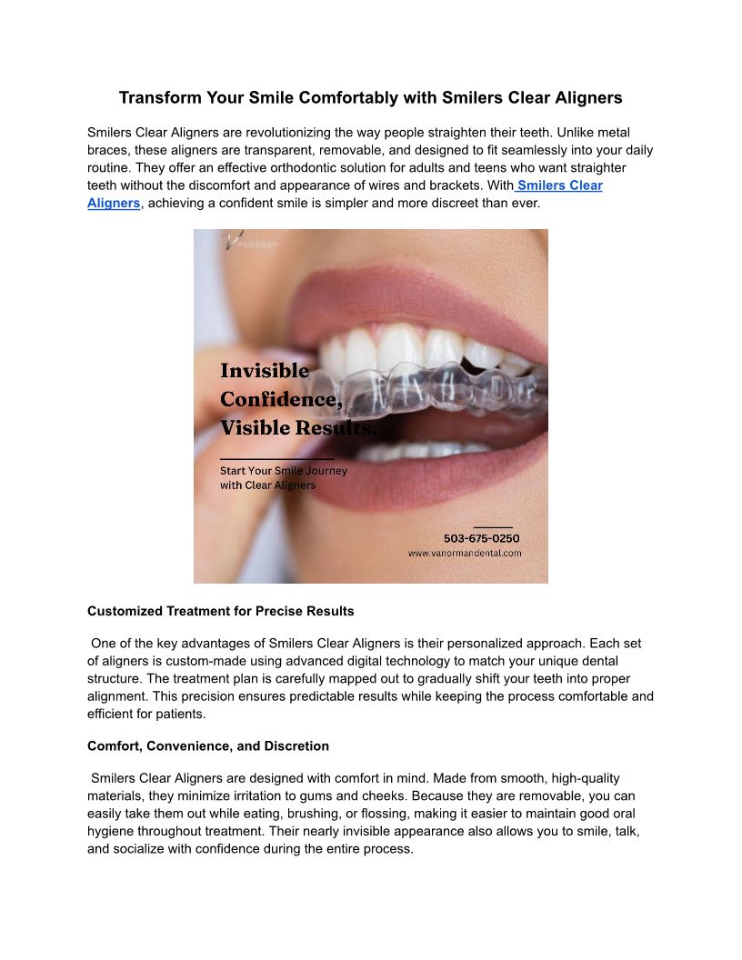 Transform Your Smile Comfortably with Smilers Clear Aligners