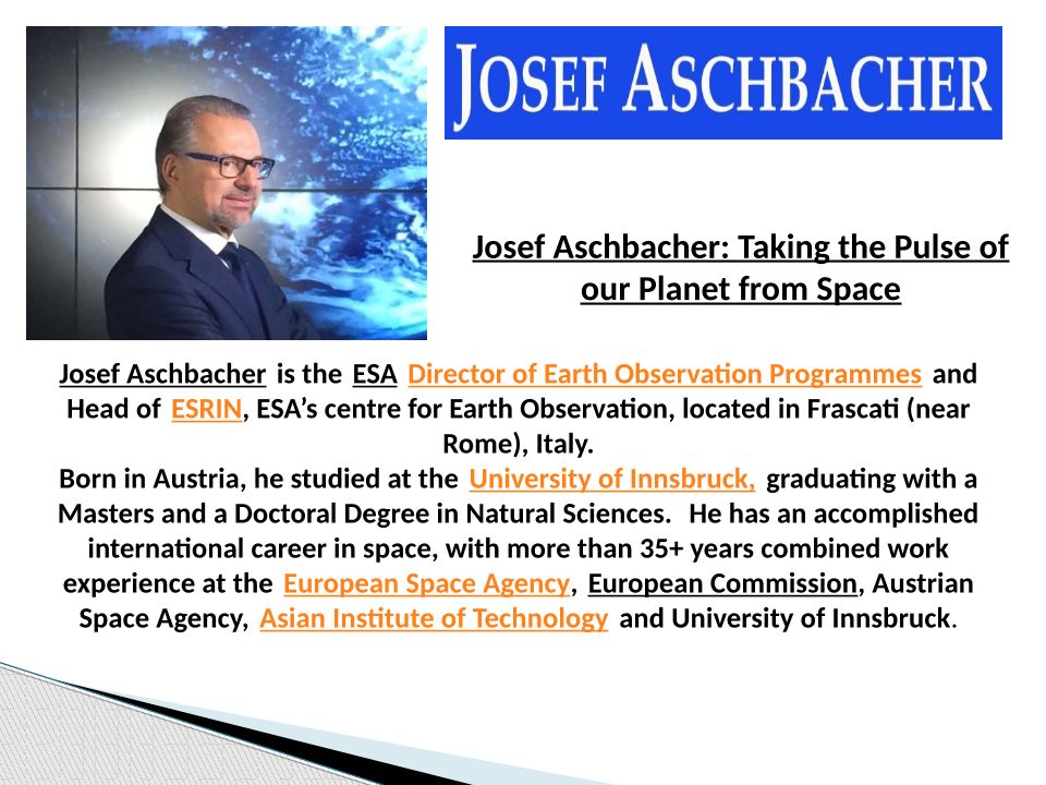 Josef Aschbacher Taking the pulse of our planet from space