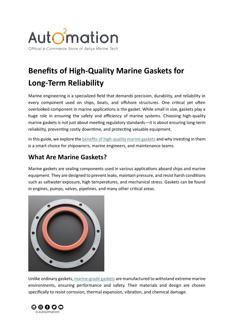 Benefits of High-Quality Marine Gaskets for Long-Term Reliability