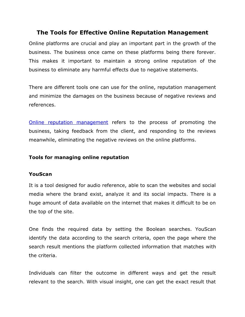 The Tools for Effective Online Reputation Management