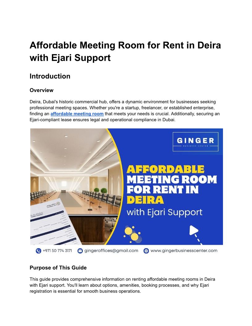 Meeting Rooms for Rent in Dubai | Ginger Business Center