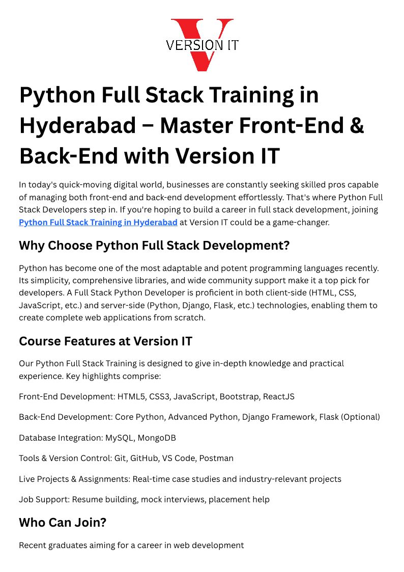 Python Full Stack Training in Hyderabad – Master Front-End & Back-End with Version IT